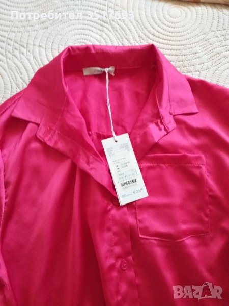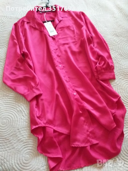 Страхотна, сатенена , дълга риза размер S ,но е over size и е подходяща спокойно за М и L Нова