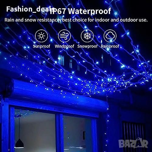 - 300LED Слънчеви завеси за градина: 3x3м, студено сини и бели светодиоди
