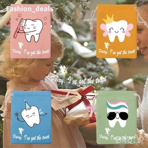 Нов комплект от 4 броя Подаръчни торбички за Феята на зъбките Калъф момчета и момичета