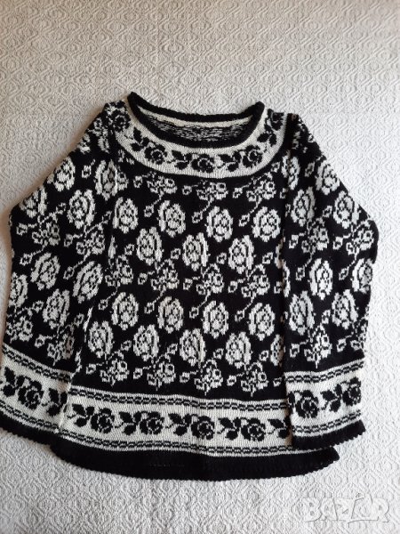 Блуза в бяло – черно рози, пан, гръдна обиколка 47 см., дължина 64 см., ръкав 51 см., рамо 15 см.