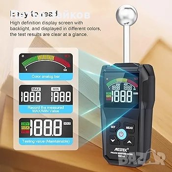 ✅【Лесен за използване】Дълбочина на измерване: макс. 40 мм дълбочина на стената. Измерването в една точка може да показва максималната/минималната стойност едновременно. Функция за мокра и суха аларма: мокро/рисково/сухо, прагът на алармата може да се регулира автоматично според изискванията на потребителя. Моля, използвайте бутона "MEAS" за калибриране след включване. Функцията за задържане може да се използва за запис на текущото отчитане.