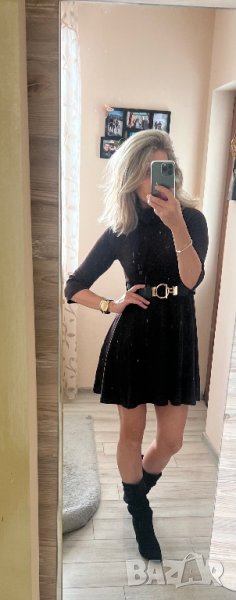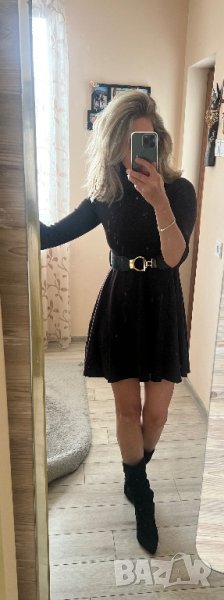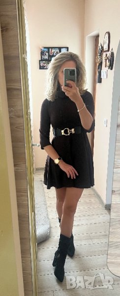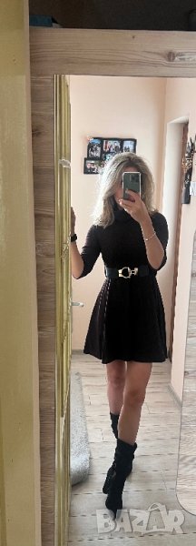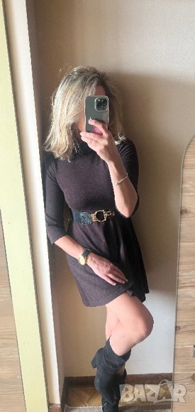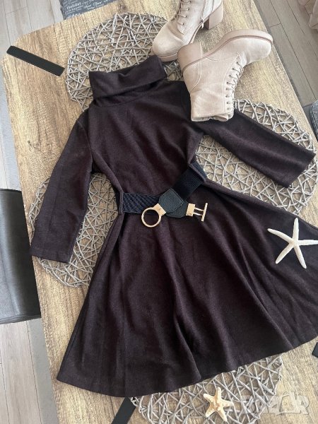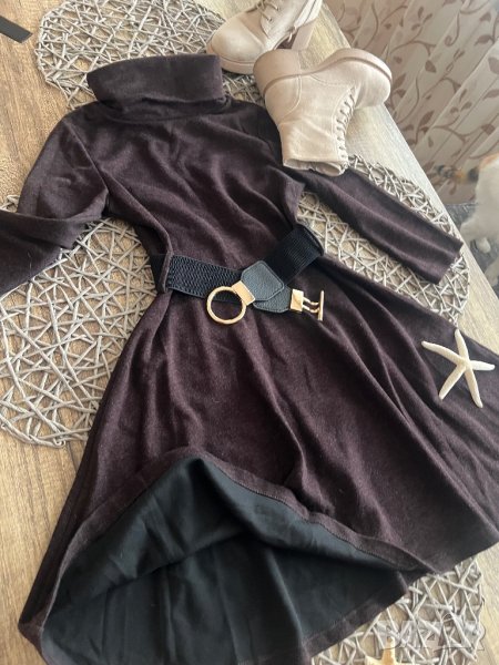 Роклята е подходяща за есенно зимния сезон, еластична е. Поло яка, която не е плътно по врата. Къс, разкроен модел в мек кафяв цвят.