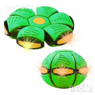 Но това, което прави тази сплескана топка наистина специална, са нейните очарователни светлини. С едно просто натискане на бутон топката се превръща в шоу от цветни и ярки светлини, създавайки завладяваща атмосфера в стаята на вашето дете. Тези светлини могат да се регулират според личните предпочитания, а ефектът на НЛО ще добави нотка мистерия и приключение към всяка игра.
