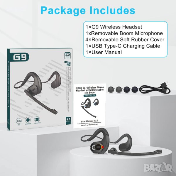 Тази Bluetooth слушалка разполага с дизайн с отворено ухо за комфорт и намалено увреждане на слуха, което я прави подходяща както за офис, така и за дейности на открито. Включва подвижен, въртящ се на 360° микрофон на стрелата с потискане на околния шум за ясни разговори. Лекият, IPX5 водоустойчив дизайн е идеален за спорт, с удобни за кожата силиконови куки за уши за стабилност. Използвайки Bluetooth 5.3, той предлага стабилни връзки и многоточково сдвояване с различни устройства. В допълнение, той може да се похвали с 12-часово време за възпроизвеждане с батерия от 150 mAh и бързо зареждане Type-C и лесна работа за музика, разговори и достъп до гласов асистент.