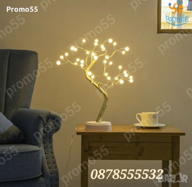 ПРОМО! Ново! Настолна Лед Лампа Модел на Дървото Бонсай 36 Лед Перли