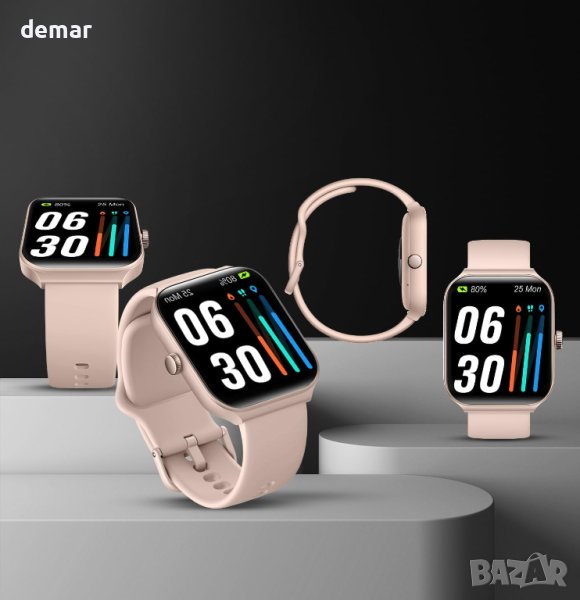 Този смарт часовник предлага интеграция на Alexa и водоустойчивост IP68, което позволява гласови команди и съвместимост с интелигентни домашни устройства. Той разполага с 1,95-инчов сензорен екран с издръжливо панда стъкло, Bluetooth свързаност за обаждания и известия за съобщения и цялостно проследяване на здравето, включително сърдечен ритъм, кислород в кръвта, стрес и наблюдение на съня. Поддържайки над 100 спортни режима, той проследява ежедневните дейности като стъпки и калории. Устройството може да се похвали с дълъг живот на батерията, подходящо за iOS 9.0 и Android 6.0 и по-нови версии, с до 7 дни редовна употреба с едно зареждане. Допълнителните функции включват разнообразие от циферблати и опции за показване на известия в социалните медии.