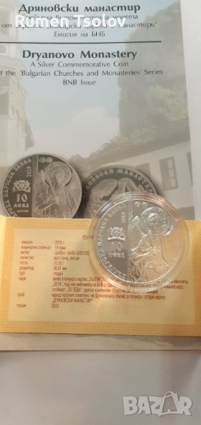 10 лева 2019 година Дряновският Манастир .Отлична сребърна монетка със сертификат и брошура