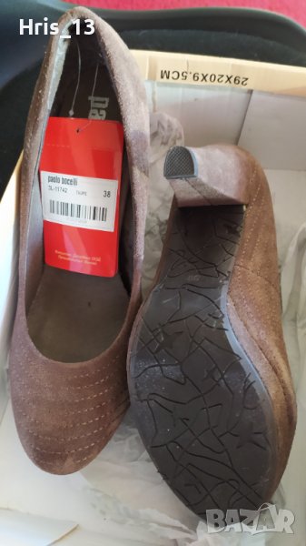 Нови елегантни обувки Paolo Botticelli , с кутия, велур, удобен ток , 38 номер, цвят таупе към кафяво .