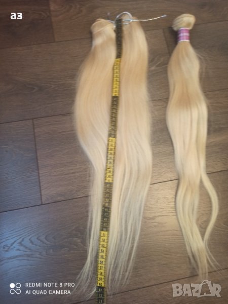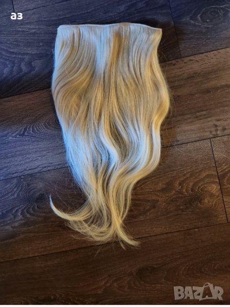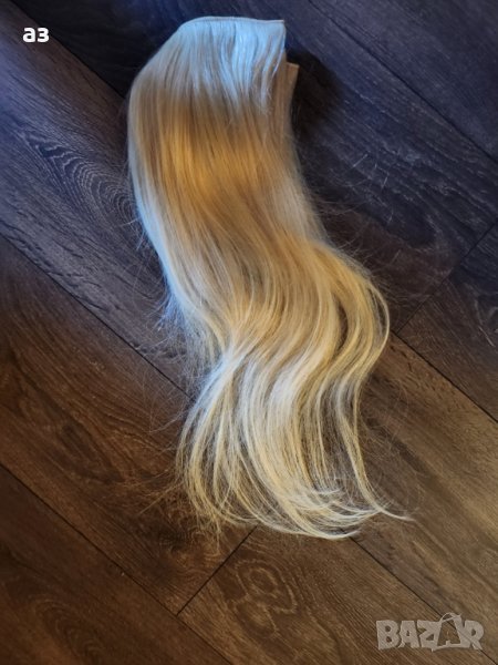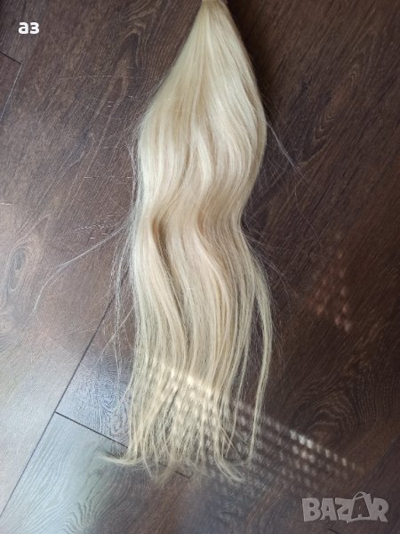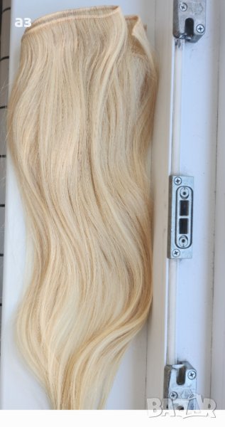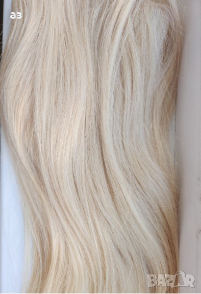 Естествена коса. На една цяла неразкроена треса. Подлежи на третиране с преса и маша.Подлежи на боядисване.Дължина на косата 55см.95-100 гр.Цвят #613-слънчево русо.