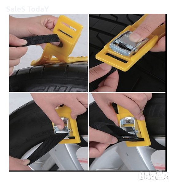 Веригите за сняг против приплъзване са изработени от висококачествен издръжлив TPU и скоби от алуминиева сплав, за да осигурят издръжливост и дълъг експлоатационен живот. Идеални са за пътища с лед, сняг или кал. Те се закрепват лесно към задвижващите колела и са безопасни за използване. Можете да ги регулирате за минути, без да се налага да местите колата или да използвате крик.Веригите против подхлъзване предпазват от подхлъзване по време на шофиране и намаляват спирачния път. Използването на 4 вериги повишава надеждността и подобрява стабилността при шофиране. Съвместими са с повечето автомобили. Частта, която е на гумата е с размери 26х12 см, а лентата 56 см обгръща гумата и се захваща за метална част.