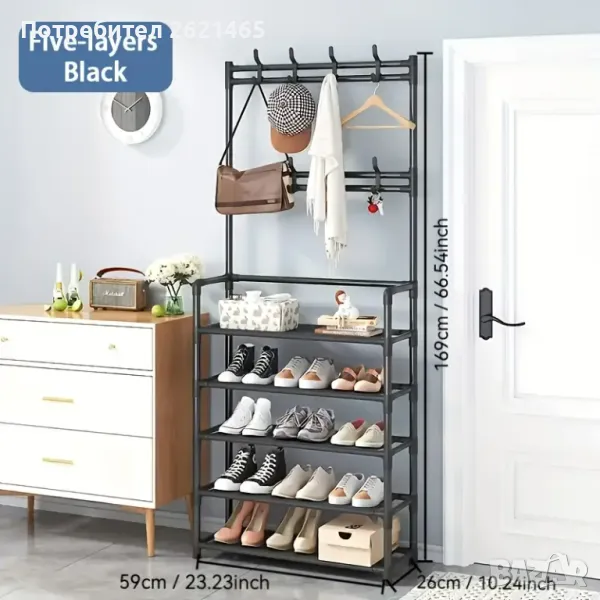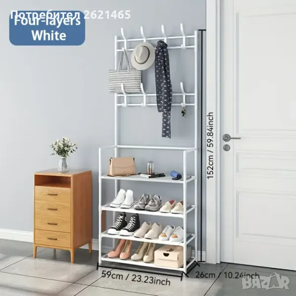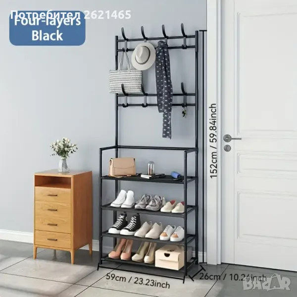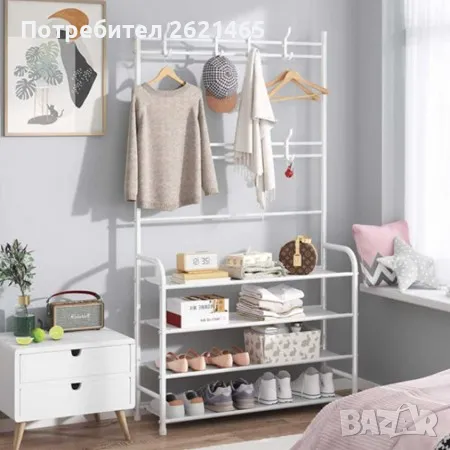 етажерка, която може да се използва като стойка за обувки, закачалка за дрехи, шапки, обувки, чанти, чадъри и други.