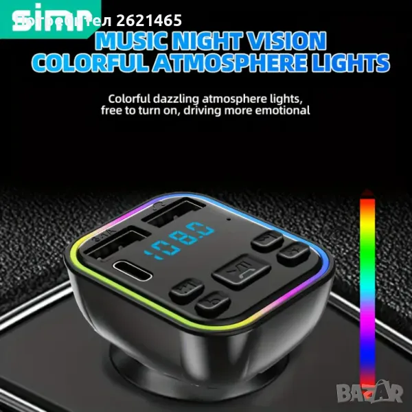 - С този блутут FM трансмитер, можете да слушате музика от телефона чрез блутут връзка или от флашка.