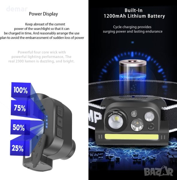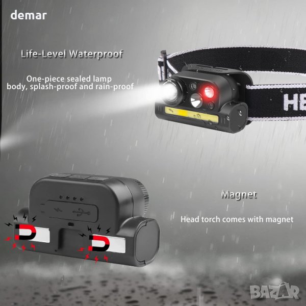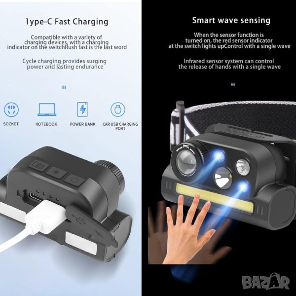 Това първокласно LED фенерче предлага разнообразни опции за осветление, включително LED за дълги и къси светлини, топъл LED, COB LED за мощна бяла или червена светлина и допълнителен зелен LED. С регулируем ъгъл от 135°, той осигурява осветление със свободни ръце за различни дейности. Функцията за мащабиране ви позволява да регулирате фокуса, а издръжливата ABS конструкция гарантира устойчивост при външни условия. Подвижната лента за глава и магнитният дизайн на гърба предлагат удобство, а интегрираната батерия от 1200 mAh осигурява 5-10 часа непрекъсната употреба, с презареждане тип C и обратно зареждане за спешни случаи.