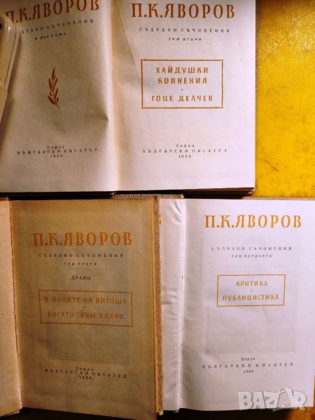 - "Събрани съчинения" на П.К.Яворов, налични том 1,2,3,4 и 5-ти