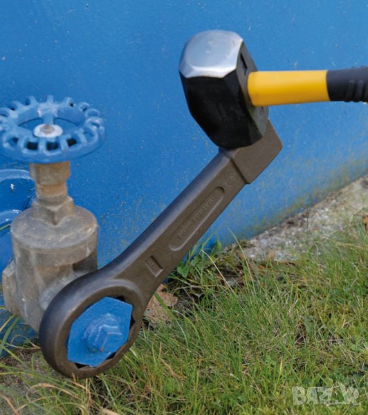 • АРТИКУЛ: Оригинал Професионален Германски Силов Инструмент Гаечен Ключ Ударна ЗВЕЗДА 115мм с усилена пета ръкохватка; (Forged Steel Industrial Heavy-Duty 12-Point Slogging Ring Bihexagonal Spanner Wrench 115 mm Sledge Hammer Striking Tool DIN 7444);