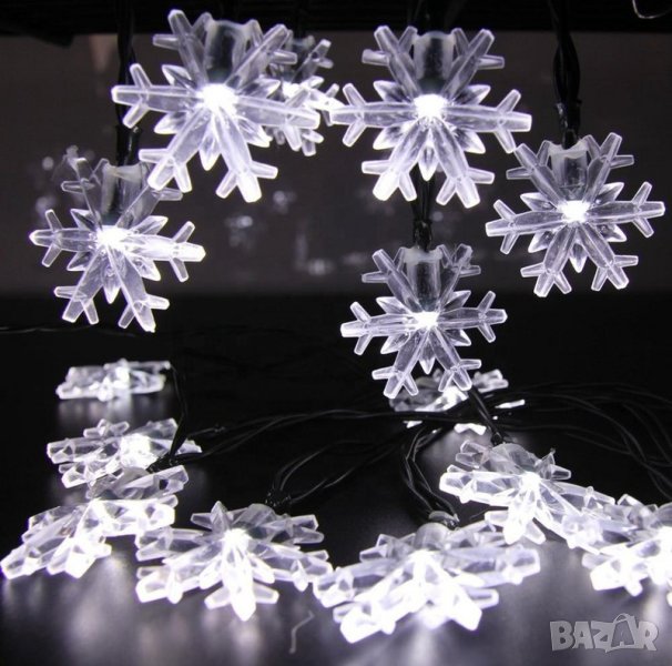 Многоцветни коледни LED лампички със снежинки с щепсел → Обява 42964534