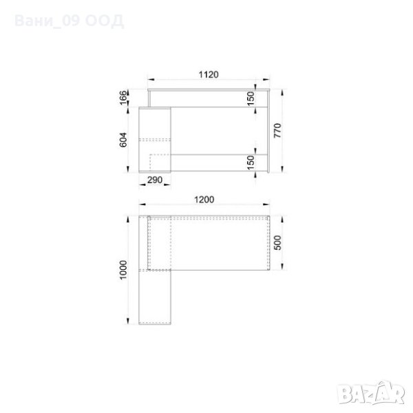 ъглово бюро от две части, състоящо се от работен плот с размери Ш:120/Д:50/В:77 см, както и удобна етажерка с големина Ш:100/Д:29/В:60 см. Моделът може пълноценно да се използва в дома, офиса или търговски обект. Със своите два плота, бюрото предоставя достатъчно голяма работна площ за поставянето на монитор, клавиатура с мишка, както и практичното съхранение на класьори, папки и канцеларски принадлежности в нишите под бюрото. В зависимост от разположението на мебелите в помещението, бюрото може да бъде с етажерка от ляво или дясно. Моделът ще ви предостави възможност, да се разположите комфортно и всичките работни материали да са пред вас прилежно подредени.