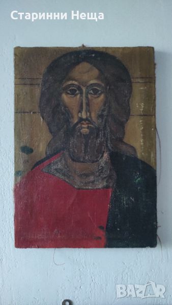 РЕДКАЖ УНИКАТ Старинна икона Исус Христос платно масло много стара икона → Обява 42967349
