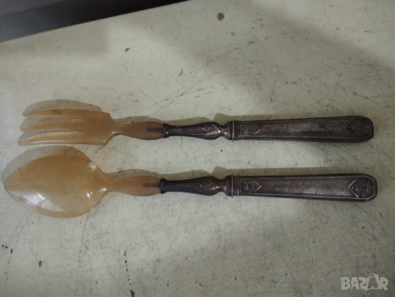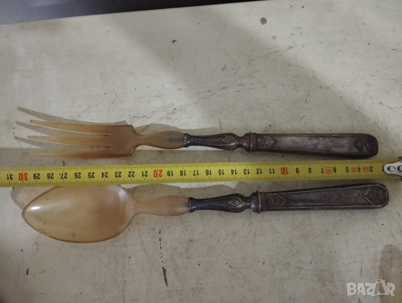 барокови прибори за сервиране-комплект.посребрена дръжка,накрайник от кост.