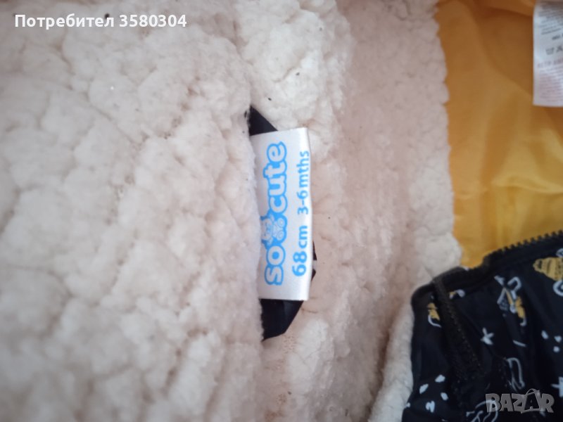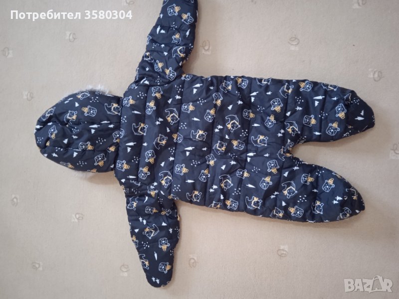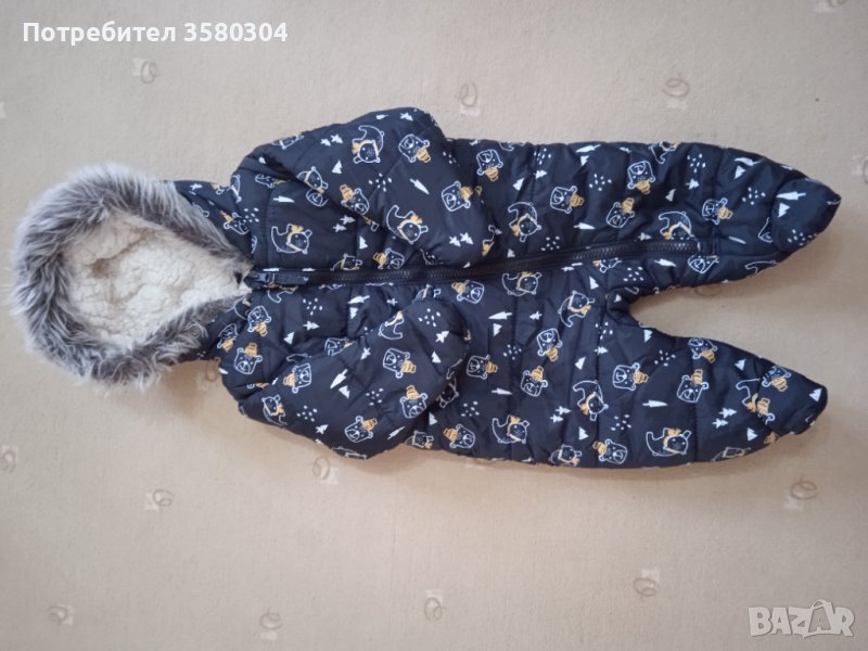 Космонавта е дебел и топъл ,подплатен с вата и каракул. Размер 3-6 месеца със затварящи се ръкави