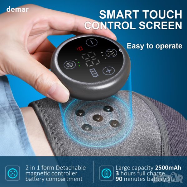 Тази нагреваема наколенка е предназначена както за комфорт, така и за терапевтични ползи. Предлага комбинация от топлинен и вибрационен масаж, насочен към отпускане на коляното и краката. Ортезата включва мощни двигатели, осигуряващи три променливи режима на масаж, съобразени с индивидуалните предпочитания. Освен това предлага пет регулируеми нива на топлина, подобряващи кръвообращението и успокояващи схванати стави и уморени мускули. Дизайнът включва регулируеми велкро ленти, което го прави универсален за използване на колене, бедра, прасци, ръце и крака. Изработен от мека, щадяща кожата материя, този компактен и преносим масажор е идеален както за вътрешна, така и за външна употреба, което го прави отличен избор за подарък за всеки повод.