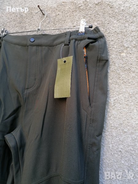Продавам комфортен зимен зелен мъжки софт шел панталон A. G. P. Материалът е ветроустойчив и влагоустойчив. Има два предни джоба и един заден с ципове. Платът е трислоен с полар отвътре, мембрана по средата, и външен слой, незадържащ влага Леко е разтеглив. Всички размери са смалени, но има и големи, които реално отговарят на 3XL. За по-сигурно сравнете с ваш панталон размерите в см :