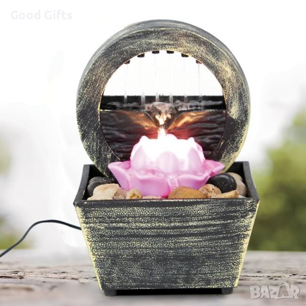 LED настолен фонтан с цветя и камъни