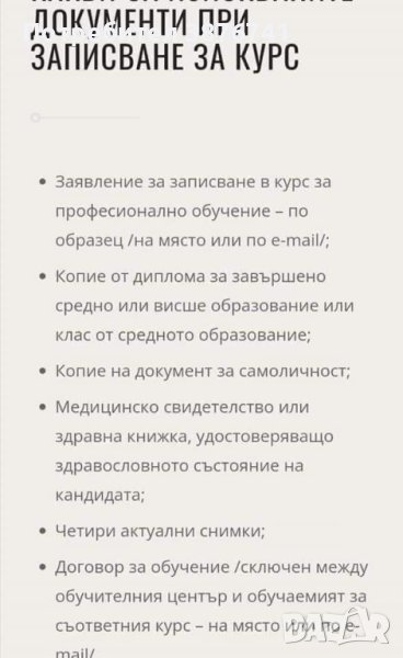 Професионални курсове за класически и лечебен масаж три модула - класически, лечебни и СПА терапии. Ние Ви подсигуряваме учебни помагала и материали, квалифицирани преподаватели със стаж и професионален опит, приятна атмосфера и индивидуален подход към всеки обучаван, международно признат сертификат, удостоверение с регистрация в НАПОО към МОН, Европас приложение, професионална подкрепа и добра бъдеща реализация. Може да се свържете с нас !