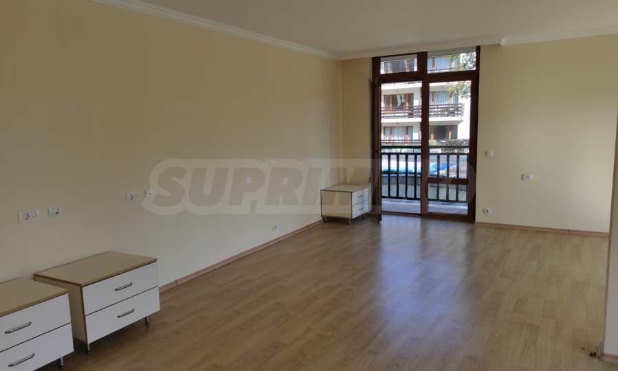 Имотът е светъл и просторен, намира се на първи етаж и има обширна тераса от 15.81 кв.м, с изглед към басейна.