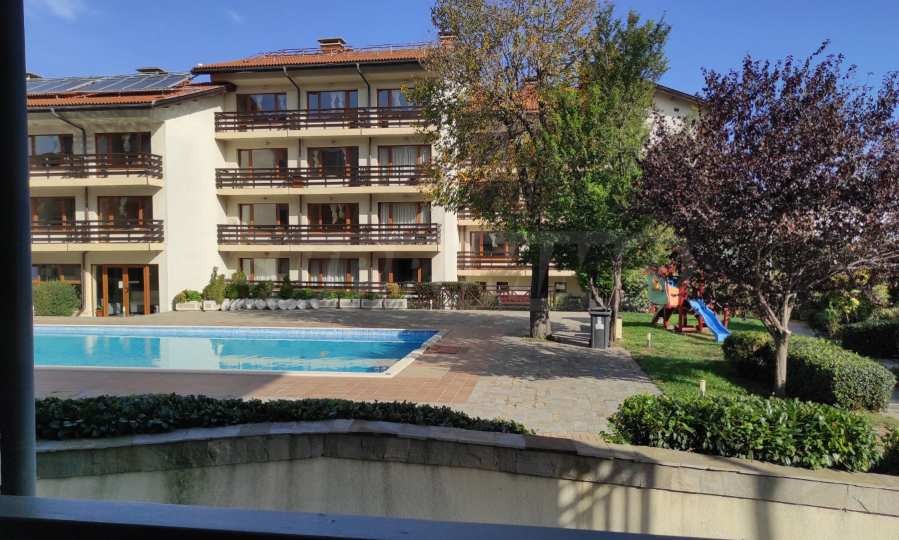 Имотът се намира в затворен комплекс с басейн и контролиран достъп.