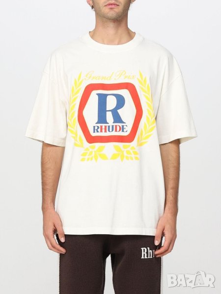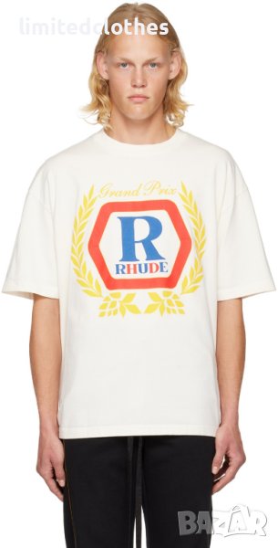 RHUDE CREAM GRAND PRIX HOPPS LOGO OVERSIZED Мъжка Тениска