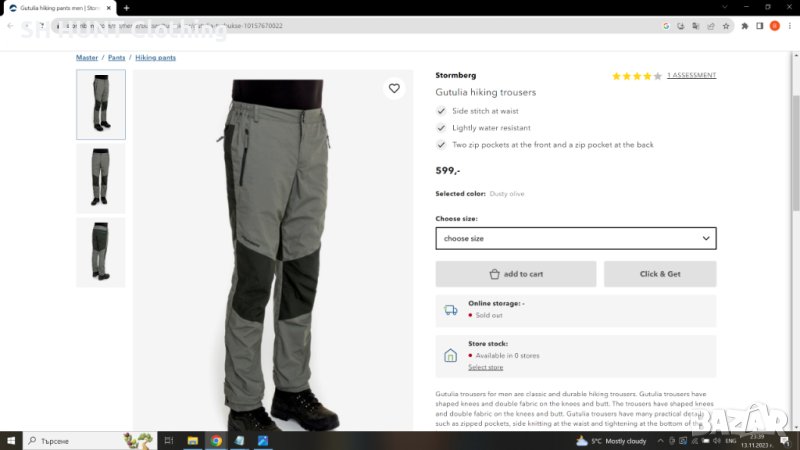 STORMBERG Gutulia Pant размер XL за лов риболов туризъм панталон със здрава материя - 391