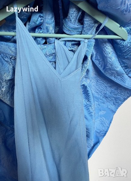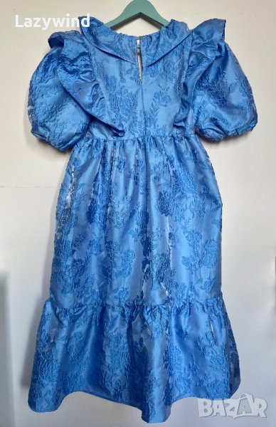 Дълга коктейлна рокля на бранда Sister Jane, нова, с етикет, размер М. Съчетана е с тънка рокля от вискоза отдолу, която е за подплата, има закопчаване със седефено копченце на врата и страничен скрит цип. Материята седи колосано и не се губи красивата форма. На снимките с модела е представена с колан, но тази няма, според мен без колан седи по-красиво така или иначе. Реалната пазарна цена е много по-висока.