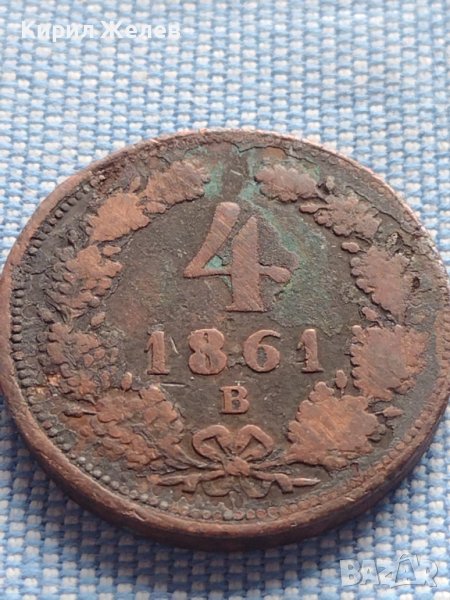 Рядка монета 4 кройцера 1861г. Франц Йозеф Австрийска империя 30402