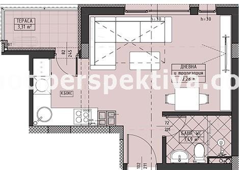 НОВ, КОМПАКТЕН апартамент с ИЗТОЧНО изложение, разположен на СРЕДЕН етаж в нова жилищна сграда пред АКТ 16. Имотът, който Ви предлагаме се състои от просторна и слънчева дневна с кухненски кът и излаз на тераса, входно антре, санитарен възел и килер. Жилището е завършено на степен шпакловка, замазка и тапа, с монтирана входна блиндирана врата, PVC дограма и поставена външна топло и хидроизолация. Имотът е изключително подходящ за инвестиция, тъй като е разположен в изключително облагороден район.