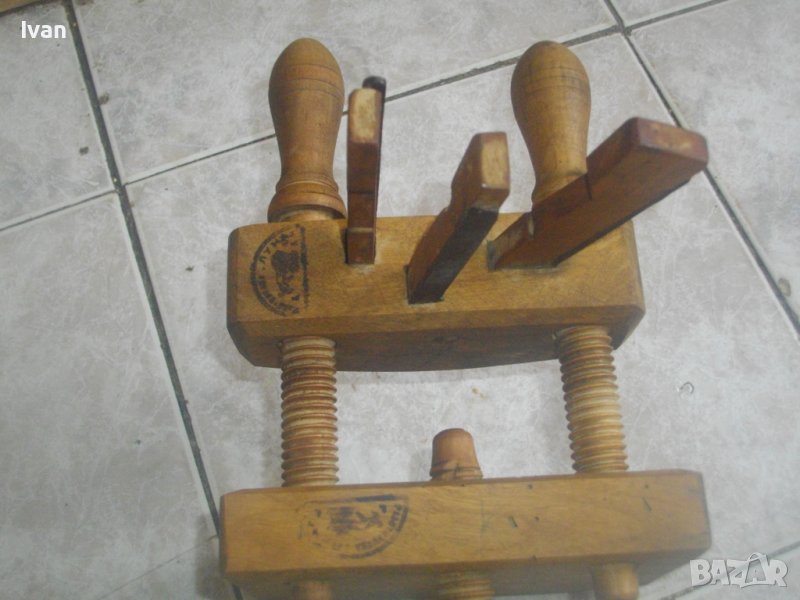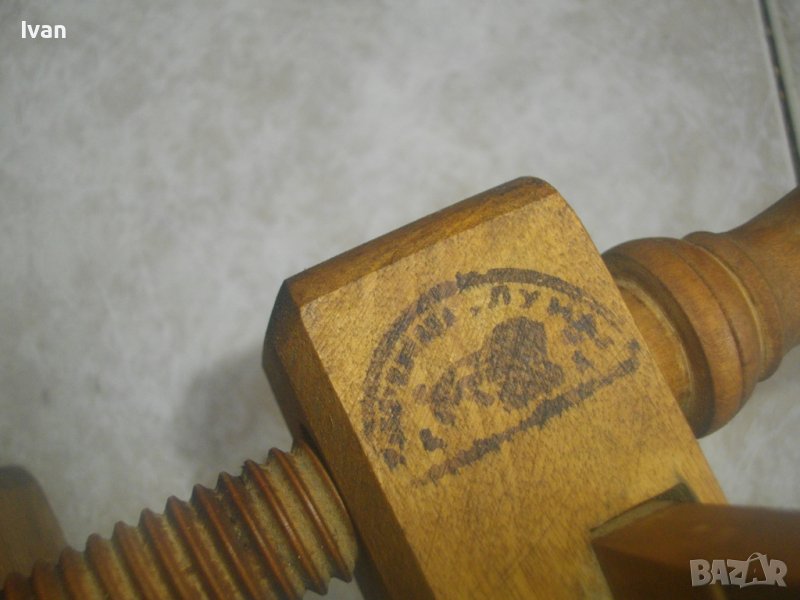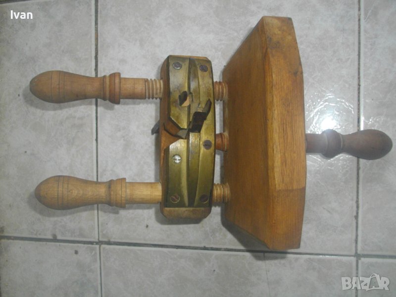 ОПИСАНИЕ на бъчварско ренде. Старо качество професионален инструмент българско производство.. Дървено ръчно дърводелско тип бъчварско. Съвсем ново, неизползвано и неупотребявано. Не мога да преценя дали е от Соц времето НРБ или от Царство България. С два мастилени печати - чете се името на фабриката "Луна", но преди него има друго вписване на печатите. Инструмента е с 3 бр. оригинални туусни ножове /двата са заострени като връх, единия е скосен/, разположени на масивна бронзово основа като глава.Регулация на притягането посредством дървени винтове.Долна голяма основа на инструмента - 165 х 145 мм. Височина на инструмента - 21 см с горните стяги, 38 см с отворена долна стяга. Отлично техническо, работно и визуално състояние на инструмента.