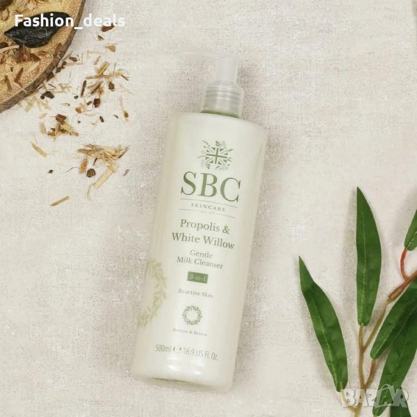 - Нежен млечен почистващ продукт SBC Skincare с прополис и бяла върба, 500мл