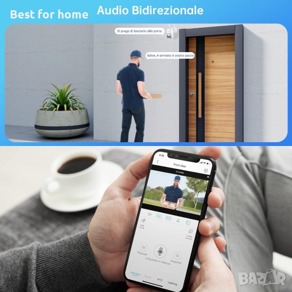 Двупосочна аудио охранителна камера - По-удобен начин да говорите и слушате семейството си или да изплашите неочаквания човек. IP66 водоустойчив - Намалява износването на камерата и удължава експлоатационния живот. 2MP HD и цветно нощно виждане с проектор - Преглед на живо с реален цвят нощно виждане дори в черна нощ. SD/Cloud съхранение - Тази външна охранителна камера се предлага с включено 7 дни съхранение в облака - Без скрити такси, абонаментните планове са по избор и облакът може да бъде затворен ръчно.