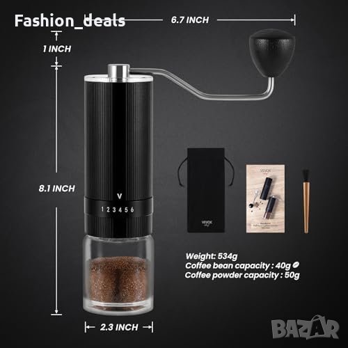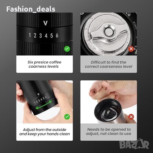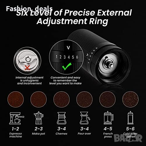 - 6 Нива на настройка - Външните настройки позволяват лесно регулиране на големината на зърната според желанието ви.