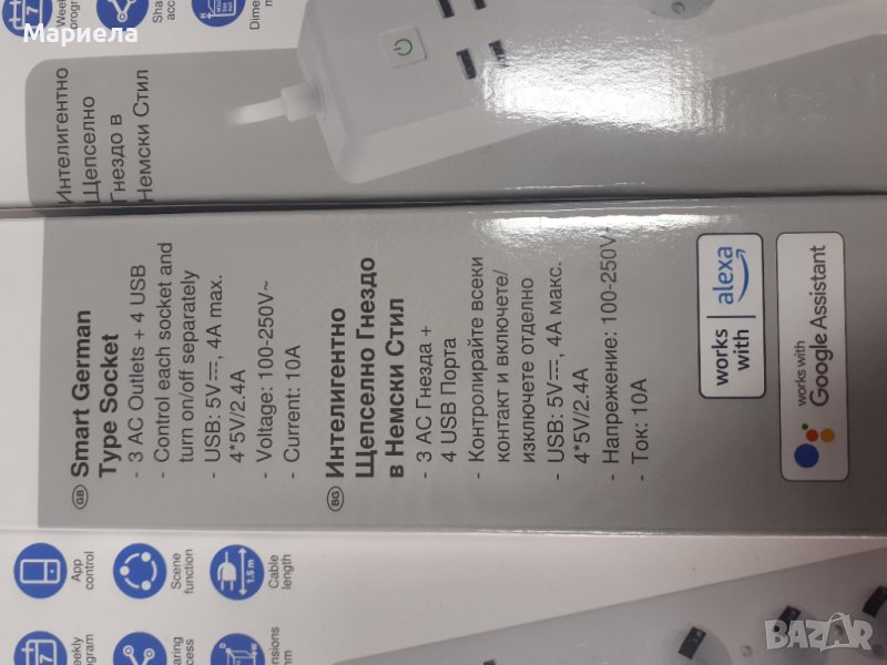 Смарт Wi-Fi разклонител 7 в 1 , Smart wifi german type socket , Интелигентен разклонител