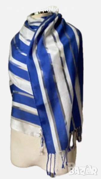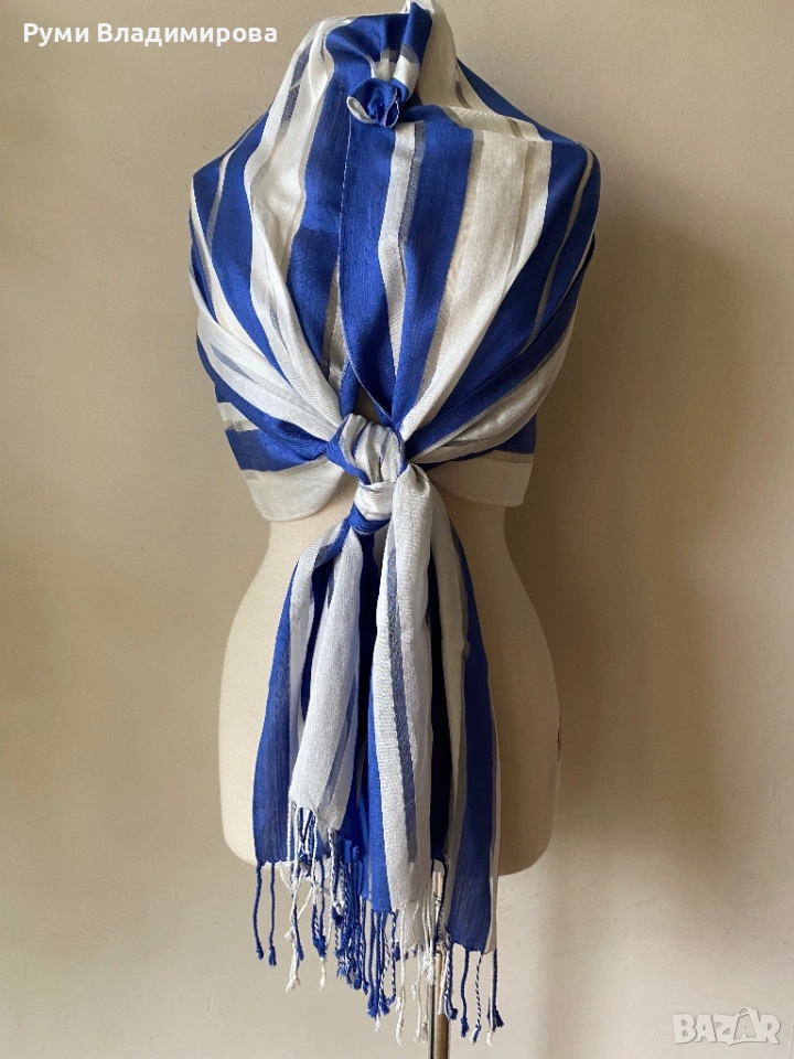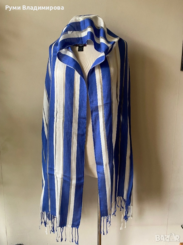 Бял шал на сини райета Hobbs, 20 % коприна/ летен шал → Обява 42989639