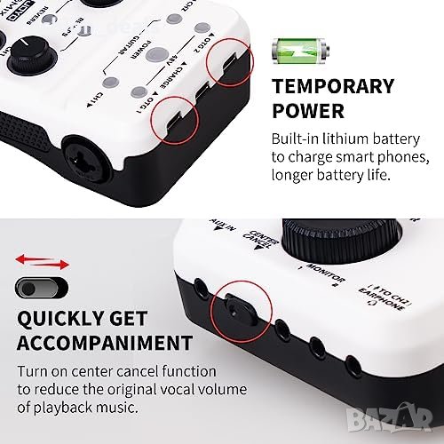 - Възможност за мониторинг на реалния вокал чрез слушалки
