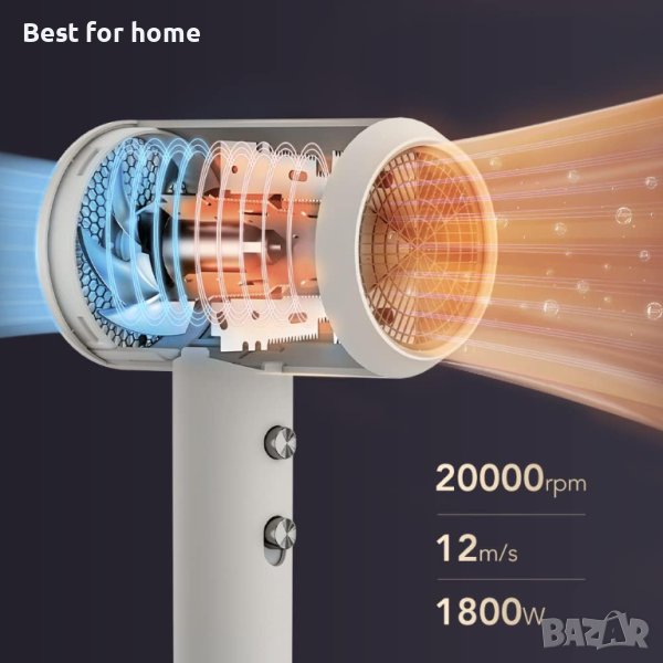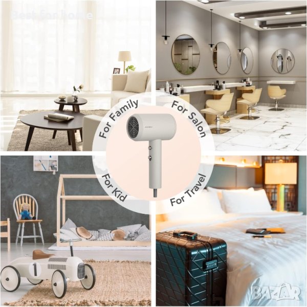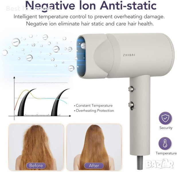 Сешоар ZHIBAI с йони, професионален сешоар с 2 температурни режима, 1 дифузер и 1 накрайник за стилизиране, сешоар с отрицателни йони