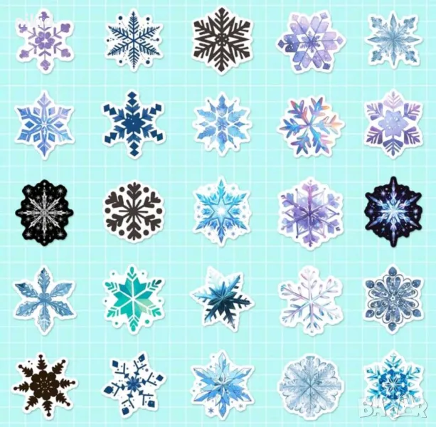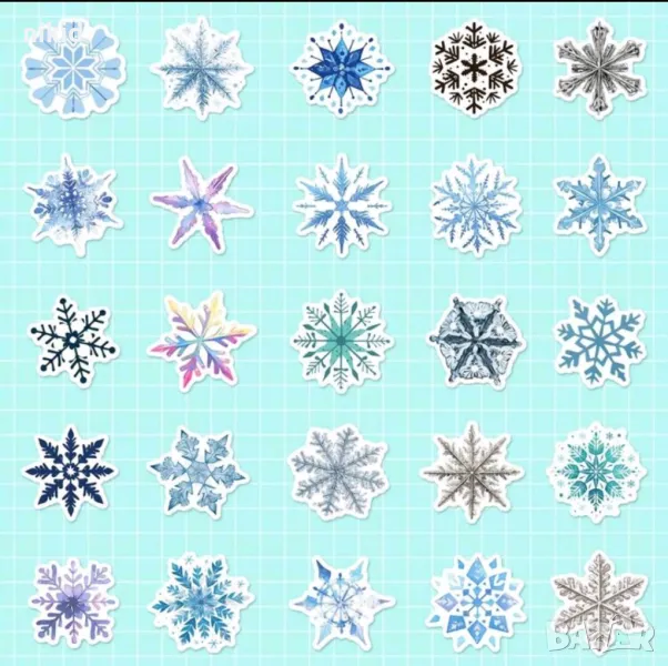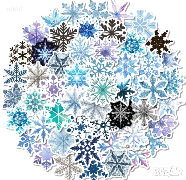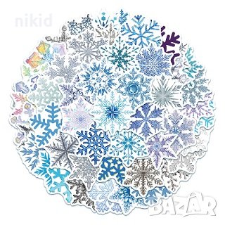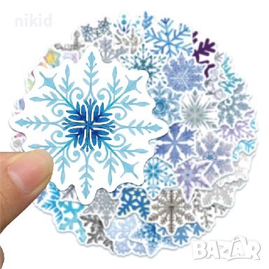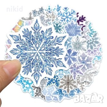 50 бр снежинка снежинки Коледни самозалепващи лепенки стикери за украса декор картонена торта др → Обява 42995381