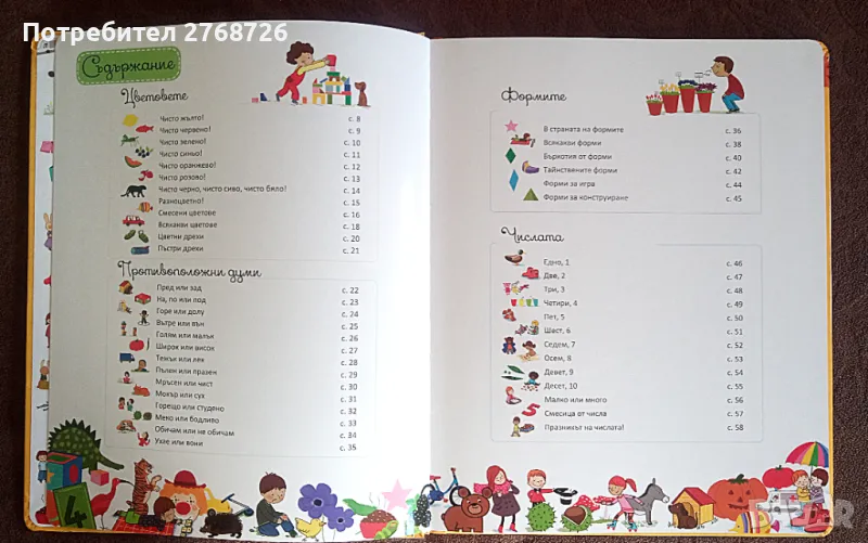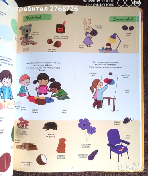 Нови енциклопедии за цветовете, думите, формите, числата на български и английски. С твърди корици и 60 гланцирани, цветни страници. Голяма, с размери 25.5 х 32 cм. Цена-21,50лв/бр.
