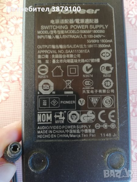 Адаптор Pioneer 18v 3500mA → Обява 42999402