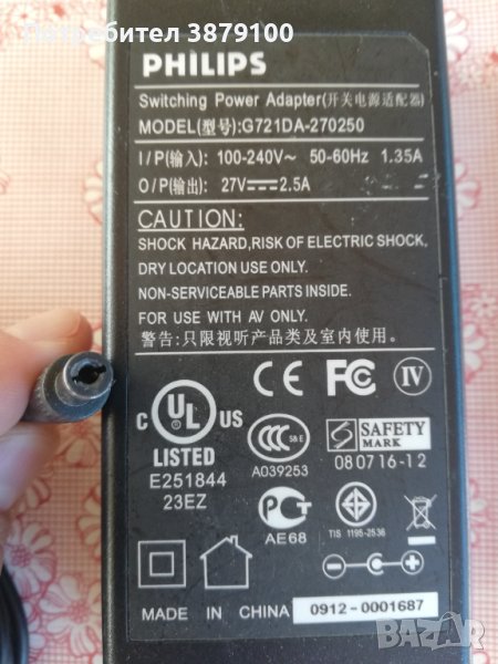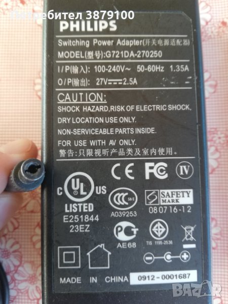 адаптор Philips 27v   2.5A, снимка 1 - Друга електроника - 42999441 адаптор Philips 27v   2.5A, снимка 2 - Друга електроника - 42999441 адаптор Philips 27v   2.5A, снимка 3 - Друга електроника - 42999441 1/3
