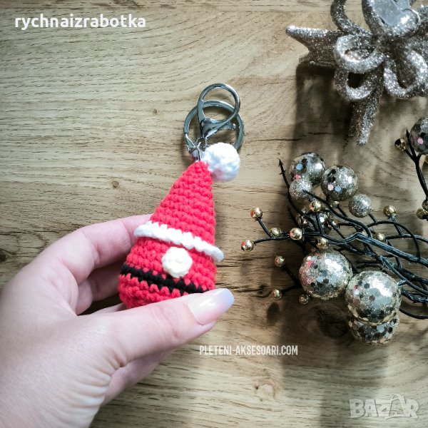 Ръчно изработен, изплетен на една кука, забавен ключодържател Коледно гномче, джудже, който ще предизвика усмивка на лицето Ви, където и да сте :)
