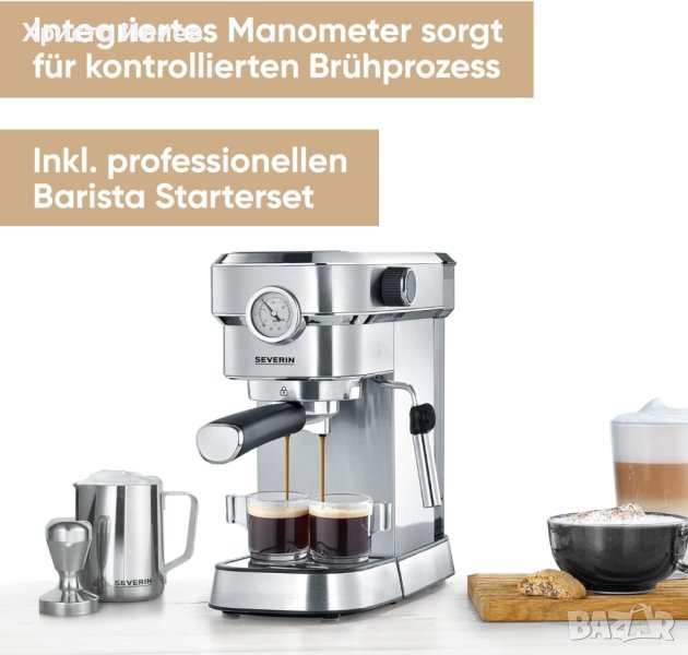 Еспресо Кафемашинa с ръкохватка Severin Espresa с комплект аксесоари за баристa