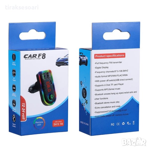 Bluetooth трансмитер – Bluetooth RGB FM Трансмитер за кола, Bluetooth музика трансмитер, снимка 1 - Аксесоари и консумативи - 43000559 Bluetooth трансмитер – Bluetooth RGB FM Трансмитер за кола, Bluetooth музика трансмитер, снимка 2 - Аксесоари и консумативи - 43000559 Bluetooth трансмитер – Bluetooth RGB FM Трансмитер за кола, Bluetooth музика трансмитер, снимка 3 - Аксесоари и консумативи - 43000559 Bluetooth трансмитер – Bluetooth RGB FM Трансмитер за кола, Bluetooth музика трансмитер, снимка 4 - Аксесоари и консумативи - 43000559 1/4
